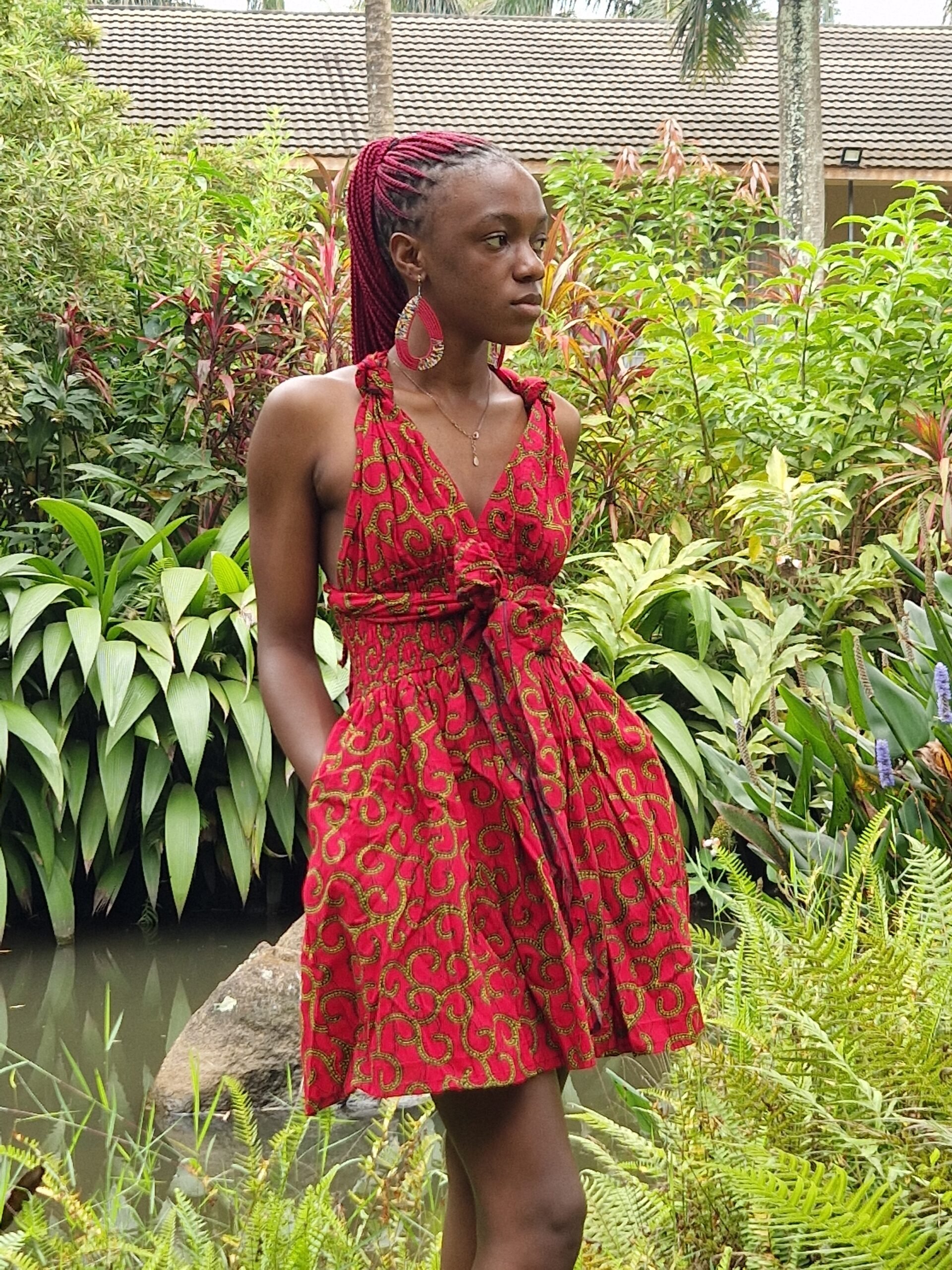 Make a statement with our Red Ankara Party Dress! Crafted with vibrant Ankara fabric, this dress exudes elegance and African flair, perfect for any special occasion.