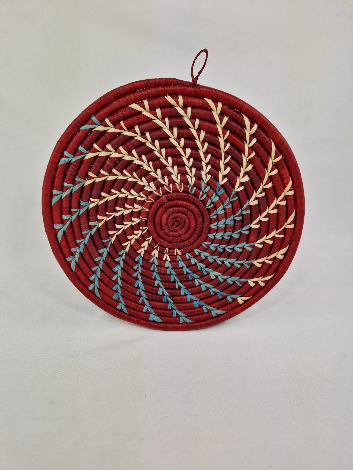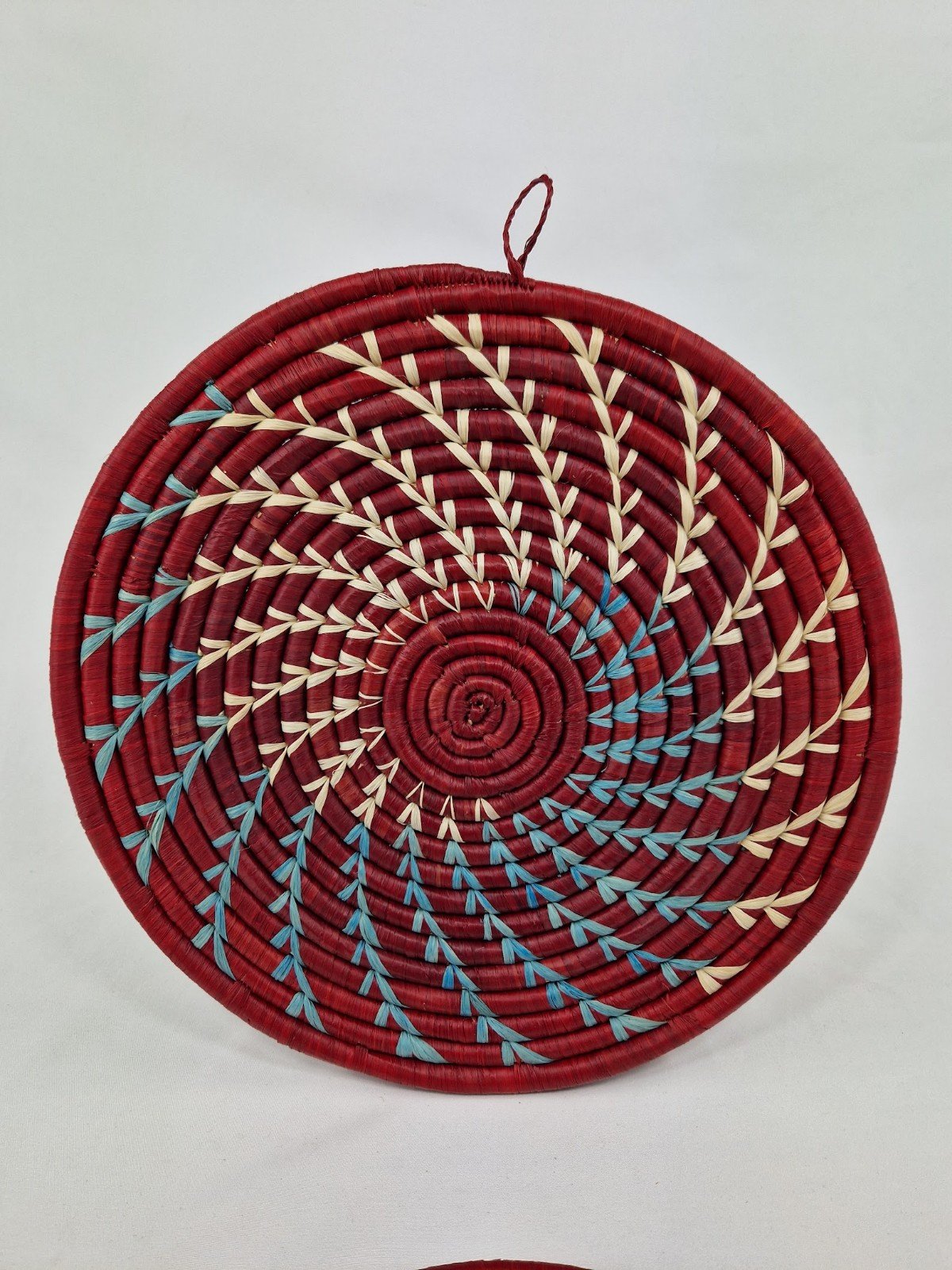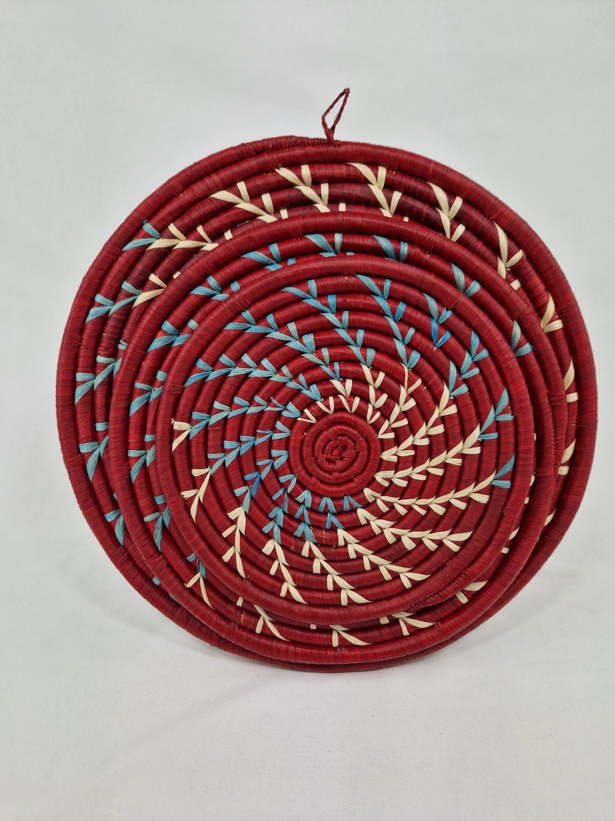White and Sky Blue Spiral Wall Baskets(Maroon)
